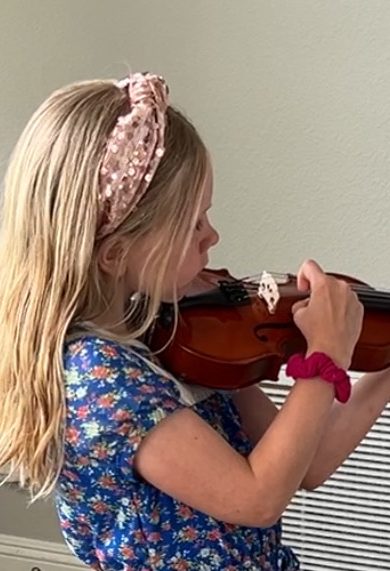 Violin is one of the most difficult instruments to learn. I focus with students on honing a growth mindset: looking for progress over perfection; noticing improvement; and being patient with themselves as they learn a new skill. Perfectionism thwarts progress and causes students to feel discouraged. Perfect playing comes after giving ourselves grace as we grow.